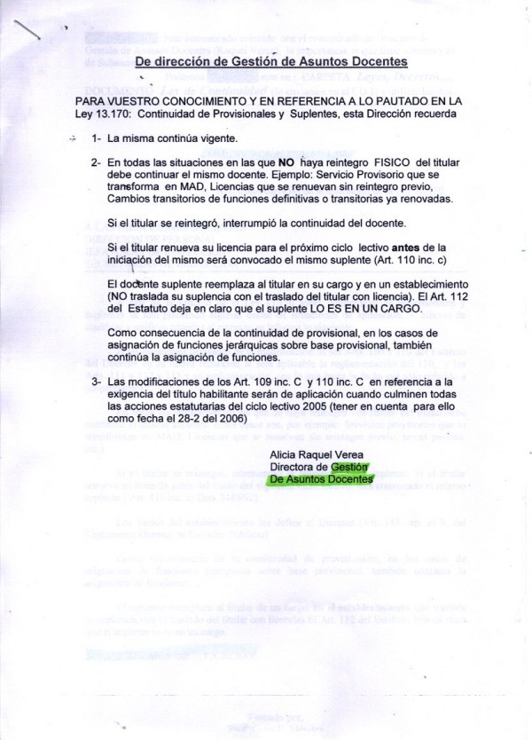 2) Un provisional se desempeña hasta el 28/2 fecha en que ingresa un titular por MAD , que va a continuar en el cargo jerarquico (no se presenta)